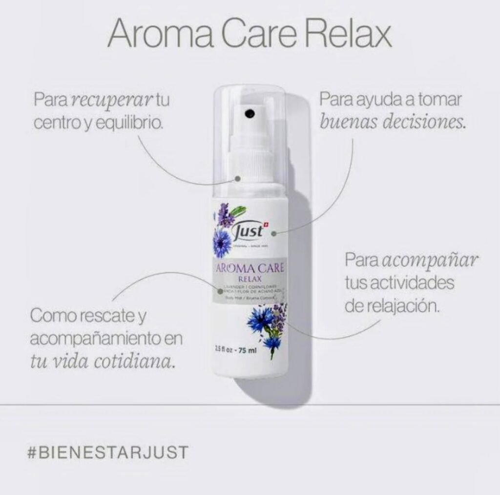La bruma Aroma Care Relax de Just no es solo un aroma; es una herramienta diseñada para ayudarte a recuperar el equilibrio cuando el día se vuelve caótico.