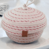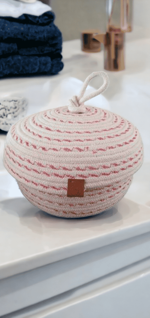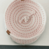 Canasto organizador decorativo con tapa, elaborado en cordon de algodon, color crudo bordado en color rojo, ideal para rellenar espacios….