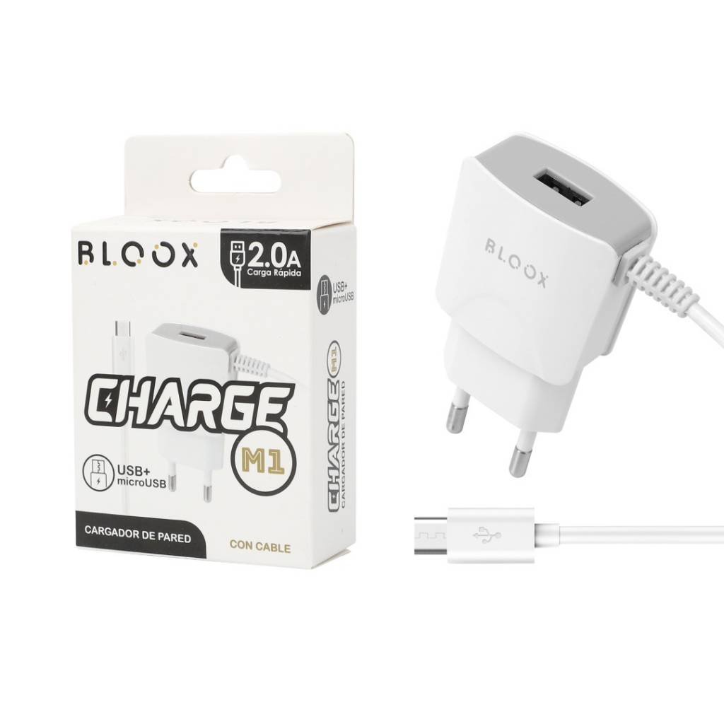 CARGADOR DE PARED CON CABLE MICRO USB + USB
