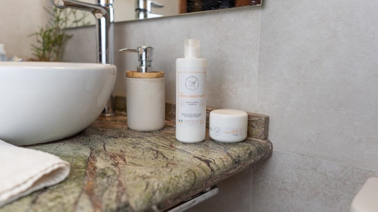 Aceites y mantecas vegetales, cera y glicerina vegetal, agua desmineralizada, agua de rosas, tinturas madre y aceites esenciales