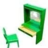 Juego de dormitorio en madera para casa de muñecasColor verdeCamita con colchón aparador y silla