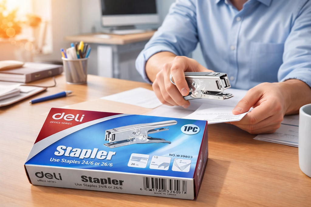 La engrapadora tipo pinza Deli es una herramienta práctica y eficiente, ideal para oficina, escuela o uso comercial. Su diseño tipo pinza permite un manejo cómodo y preciso, facilitando el engrapado con menor esfuerzo.