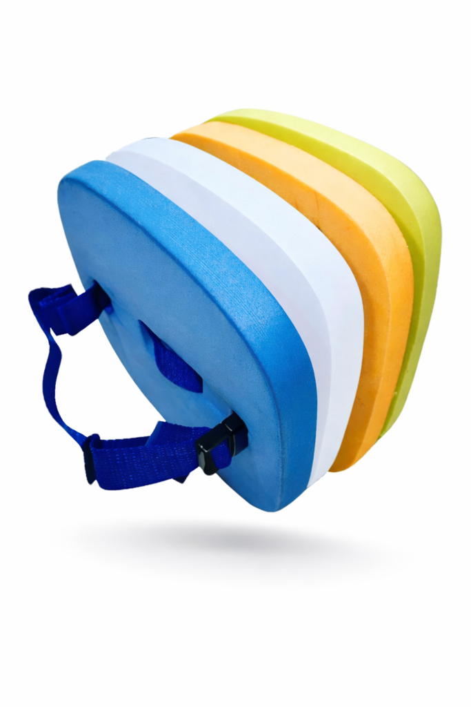 Fabricado en goma EVA de alta calidad, es liviano, resistente al agua y suave al contacto con la piel. Su diseño dividido en 4 piezas proporciona una flotación progresiva, ideal para acompañar el proceso de adaptación al agua.
