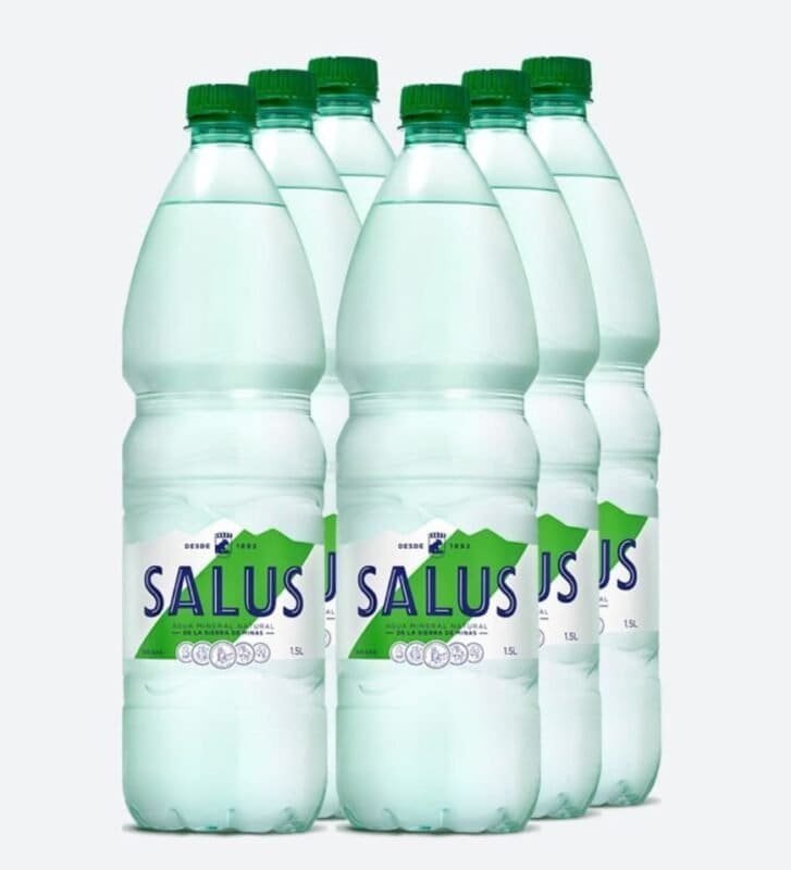 Funda de agua mineral natural sin gas SALUS, contiene 6 botellas de 1,5 Lts.
