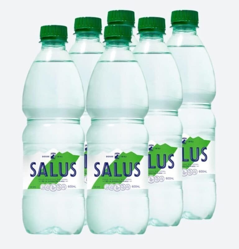 Funda de agua mineral natural sin gas SALUS, contiene 6 botellas de 600 Ml.