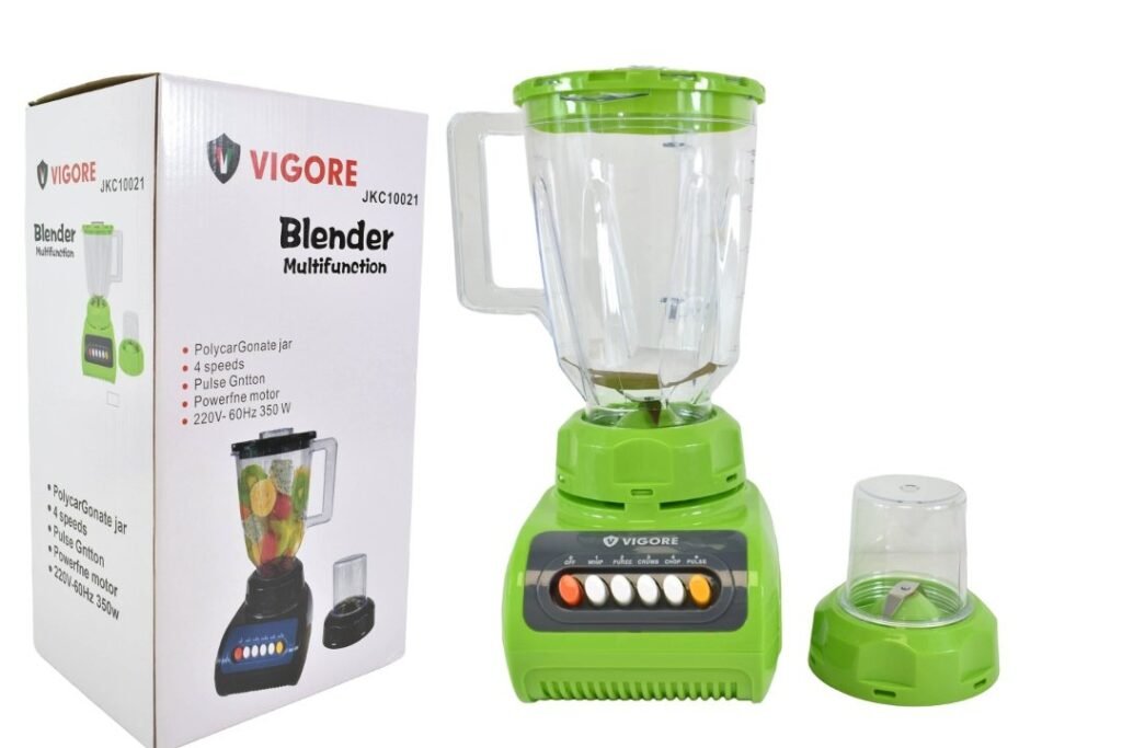 Licuadora – picadora 2 en 1. Potencia: 300W. Voltaje: 220V/240V. Posee 4 Velocidades. Cuchillas de acero inoxidable, motor de hierro fundido, potente y duradero. Color: verde.