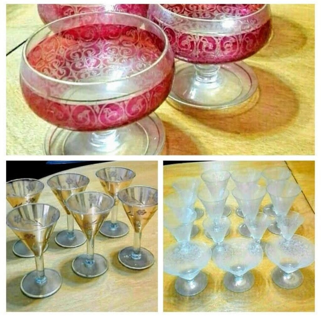 Lote de 26 copas de cristal auténticas antiguas surtidas Son las de la foto. Liquido.