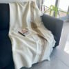 Manta Sofá Sillón Abrigo Pie De Cama Decoración 180x165 Cm Beige Camel Y Gris Rayas