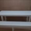El precio es por 2 bancos al natural, sin pintar más la mesa. están hechos en madera maciza, super fuertes. Las medidas son: