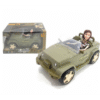 Muñeca en auto militar. Medida: 36x19x19cm. Incluye muñeca y auto. Color: verde.