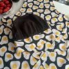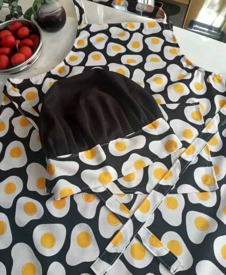 Delantal y gorro cocina, confeccionado en tela panamá en hermoso estampado de huevos, pack de delantal y gorro, disponible el publicado.