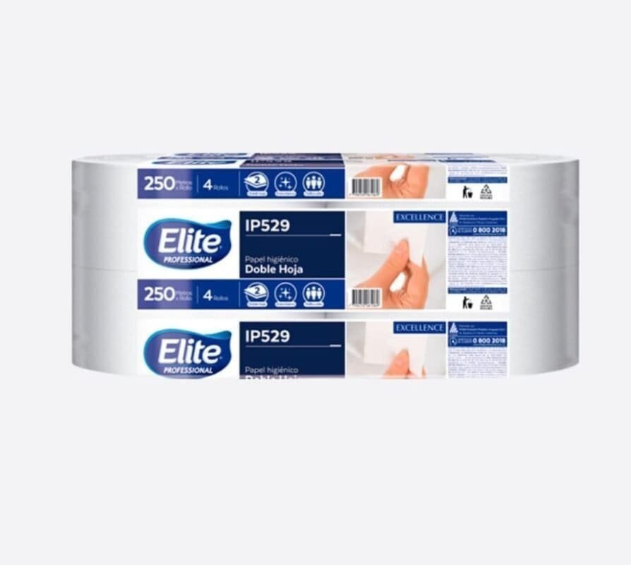 ELITE Excellence papel higiénico de alto metraje de 4 rollos por 250 Mts cada rollo.