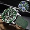 El reloj Naviforce 9197 es la elección perfecta para el hombre moderno que busca un accesorio versátil y funcional. Con un diseño elegante en colores plateado y verde, este reloj combina una correa de cuero genuino con una caja de aleación, ofreciendo durabilidad y estilo en cada uso. Su peso ligero de 101 g lo hace cómodo para el uso diario, mientras que su cierre de hebilla simple asegura un ajuste perfecto en la muñeca.