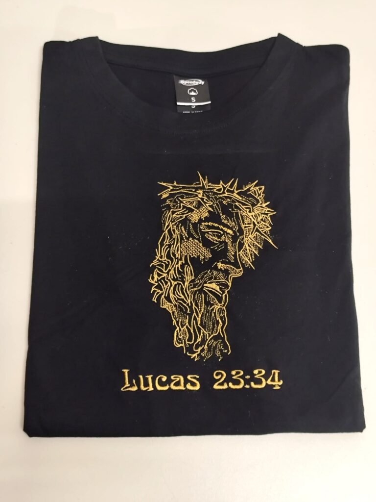 Inicio / ROPA / Remera de algodon bordada motivo cristiano