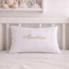 🛏 Almohadita con funda personalizada con bordado en tono suave y acabados delicados, perfecta para decorar la cuna o el espacio especial de tu pequeño/a. Medida 20x30cm