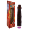 Un increíble dildo vibrador con un eje de venas suaves y una base que se ensancha.